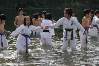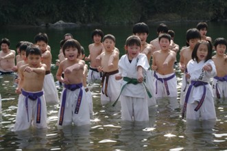 / 人,子供,着物,裸,武道,川,河畔植生