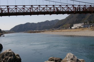 / 山,橋,人,紙,川,河原,岩石