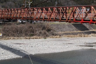 / 山,橋,人,紙,川,河原,岩石,電柱,電線,車