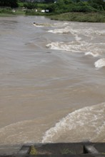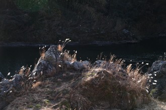 / 人,川,車,自転車,植物,河畔植生,岩石,ヘルメット
