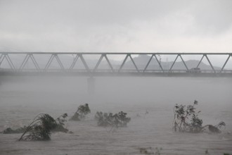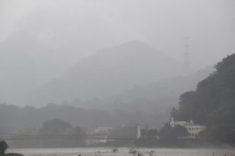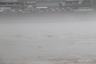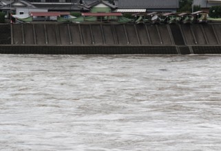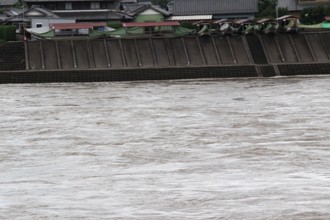 / 川,植物,河畔植生,建物,空,山,鉄塔