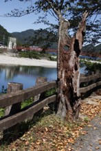 / 木,山,川,橋,電柱,空,建物,植物,河畔植生,落ち葉,岩石