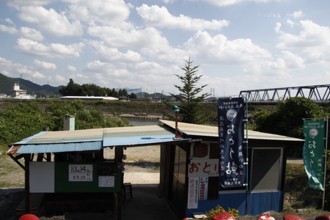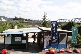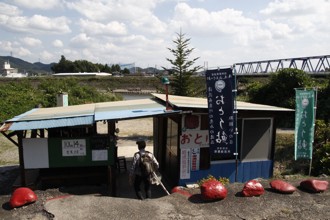 / 人,山,建物,橋,旗,川,植物,河畔植生,空,電柱,鉄塔,花,帽子,鞄