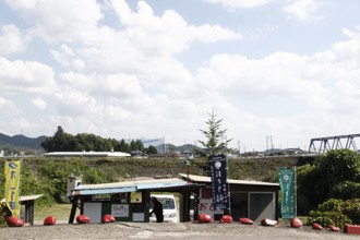 / 人,山,建物,橋,旗,植物,河畔植生,空,電柱,鉄塔,帽子,車