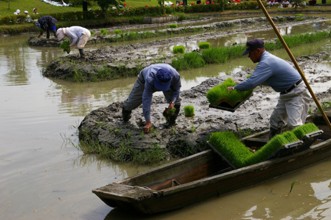 / 人,帽子,帽子,農作業,田植え,船,長靴,植物,木,子供,腕時計