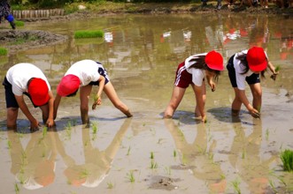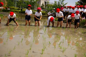/ 人,農作業,田植え,子供,体操服,木,植物,帽子