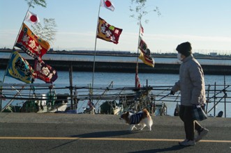 / 人,川,旗,犬,植物,建物,帽子,マスク,船,鞄,空
