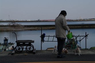 / 人,川,空,植物,犬,鞄,台車,橋,電柱,鉄塔,船