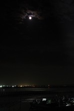 / 川,空,月,夜,橋,船,建物