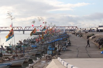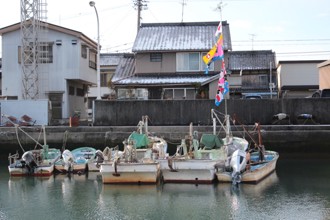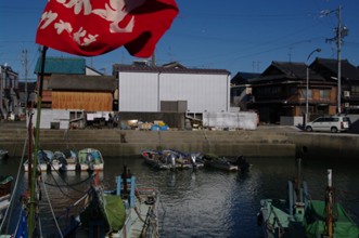 / 船,建物,旗,電柱,物干し竿