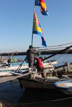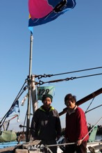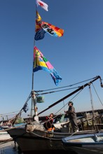 / 人,船,帽子,長靴,消波ブロック,旗,空