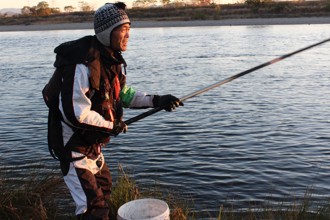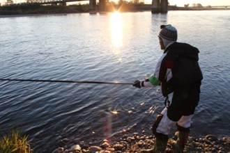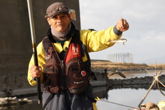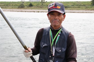 / 人,帽子,魚,釣り竿,岩石,植物,河畔植生,堤防