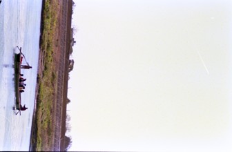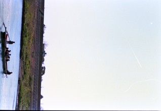 / 船,人,堤防,植物,空,木,河畔植生,帽子,車,街灯,電柱,花,川