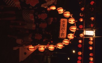 / 法被,提灯,人,祭り,植物,街灯,標識,傘,夜,子供