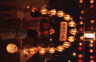 / 法被,提灯,人,祭り,植物,街灯,標識,傘,夜