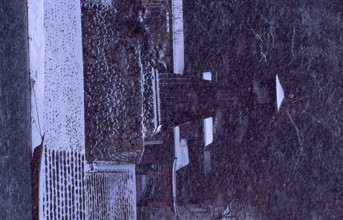 降りしきる住吉灯台 / 雪,神社,舟,川,植物,建物,階段,冬,鳥居,石垣