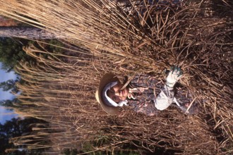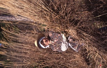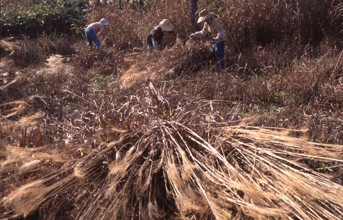 蘆苅作業・合掌作り用 / 人,帽子,植物,手袋,鎌