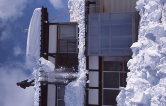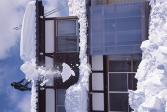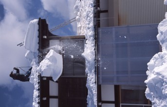 家を守る除雪作業 / 雪,建物,人,はしご,空,冬,つらら
