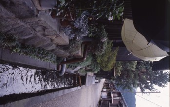 / 水路,花,植物,植木鉢,建物,傘,電柱