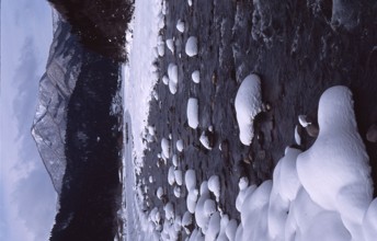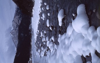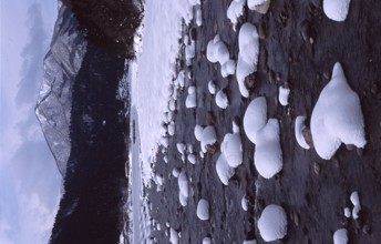 / 山,雪,木,植物,建物,岩石,空,川,冬