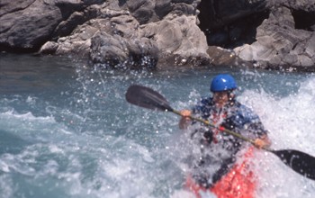 / カヤック,人,ヘルメット,岩石,しぶき,川