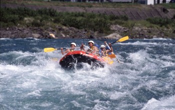 / ボート,ヘルメット,堤防,植物,岩石,救命胴衣,しぶき,川