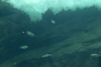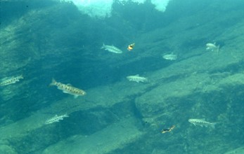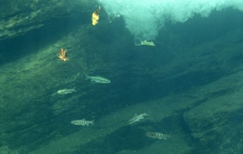 アマゴ遊泳 / 魚,岩石,落ち葉,川