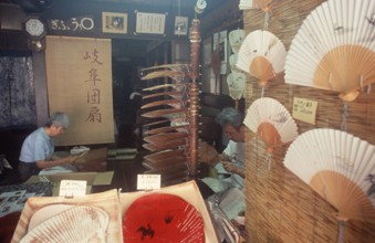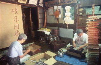 手ずくり団扇工房 / 人,眼鏡,うちわ,扇子,時計,段ボール