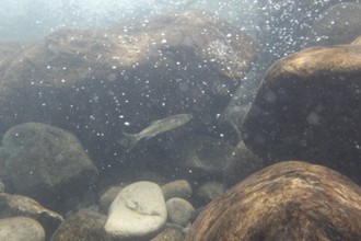 / 川,岩石,魚,気泡