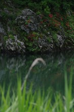 / 川,岩石,植物,河畔植生,ツツジ,花