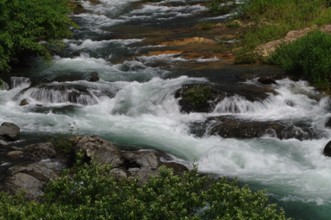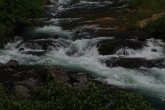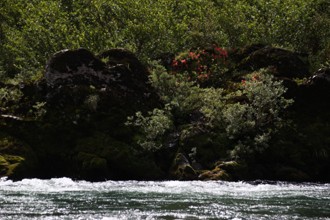 / 川,しぶき,岩石,植物,河畔植生