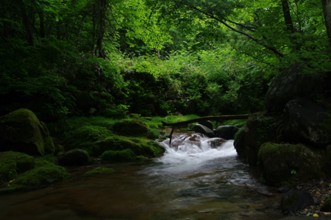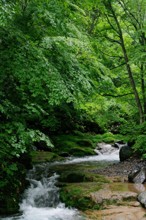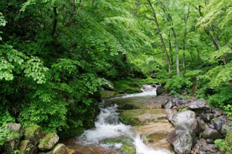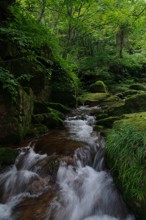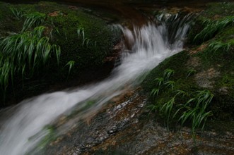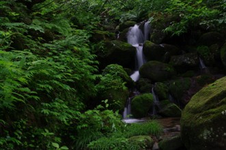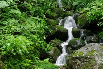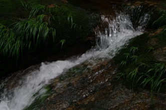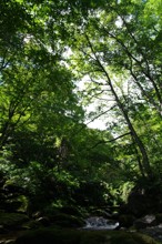 / 川,岩石,植物,河畔植生,しぶき,滝