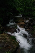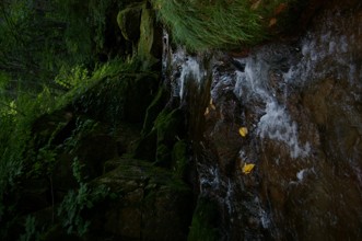 / 川,岩石,しぶき,滝,植物,河畔植生,落ち葉,木