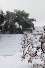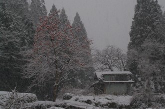 / 植物,木,実,柿,雪,山,空,川,電柱,電線