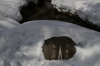 / 雪,石碑,川,岩石,植物