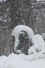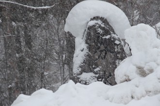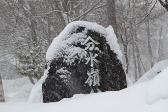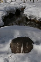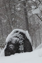 / 雪,石碑,川,岩石,植物,木
