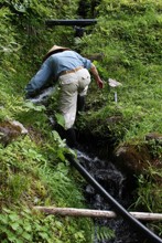 / 水田,植物,木,水路,石垣,人,長靴,笠