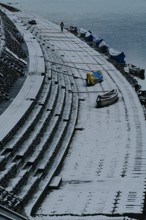 / 雪,植物,人,階段,ブルーシート,川,岩石