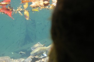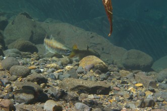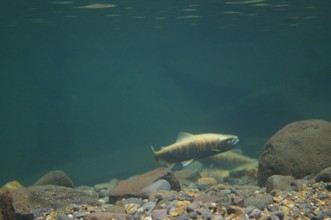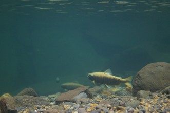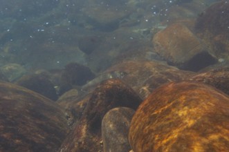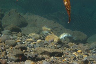 / 川,岩石,水中,魚,産卵,落ち葉