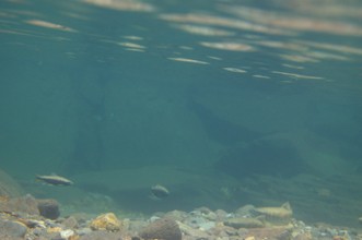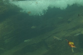 / 川,水中,岩石,魚,落ち葉