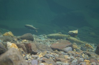 / 川,岩石,水中,魚,産卵