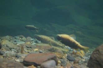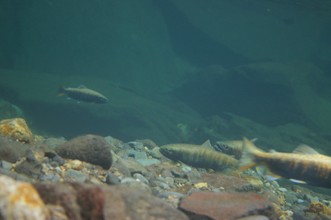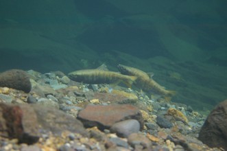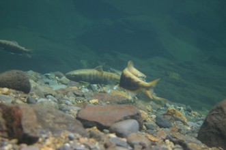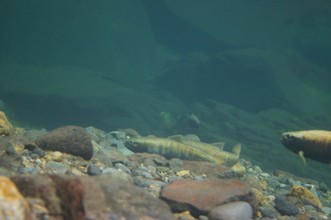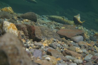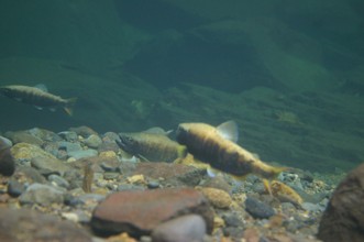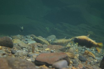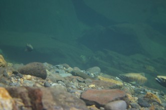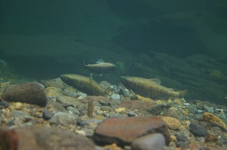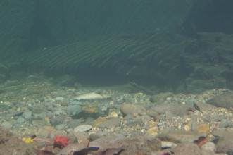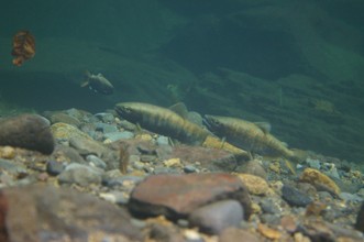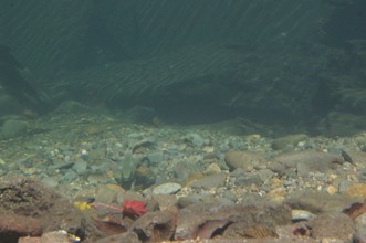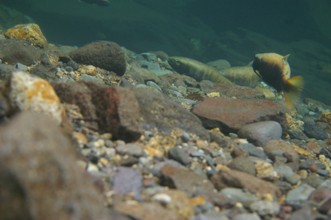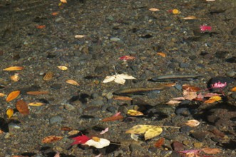 / 川,岩石,水中,魚,産卵,落ち葉