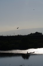 / 川,人,船,鳥,植物,木,鉄塔,電線,山,空,建物