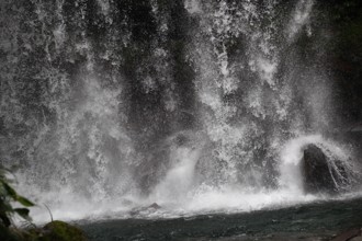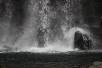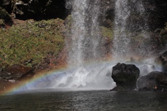 / 川,岩石,植物,河畔植生,虹,水しぶき