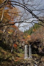 / 川,岩石,植物,河畔植生,空,紅葉,滝,森林,木