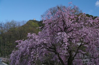 / 山,金華山,城,岐阜城,桜,旗,神社,木