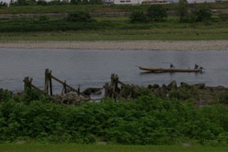 / 船,人,川,植物,木,河畔植生,建物,堤防