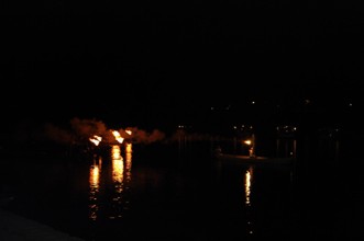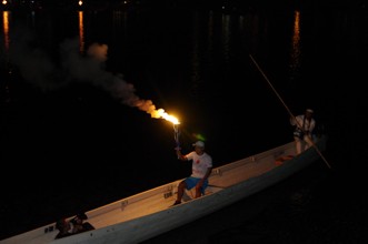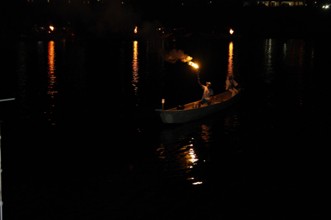 / 川,夜,人,船,火