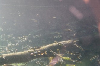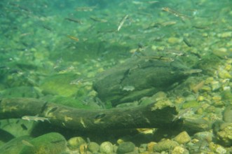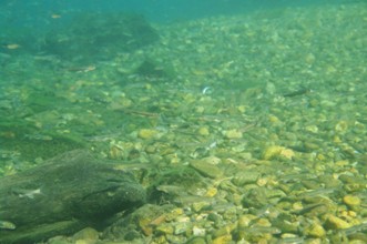/ 川,川底,魚,流木,岩石