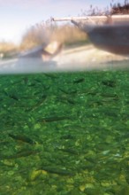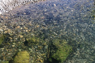 / 川,魚,川底,波紋,植物